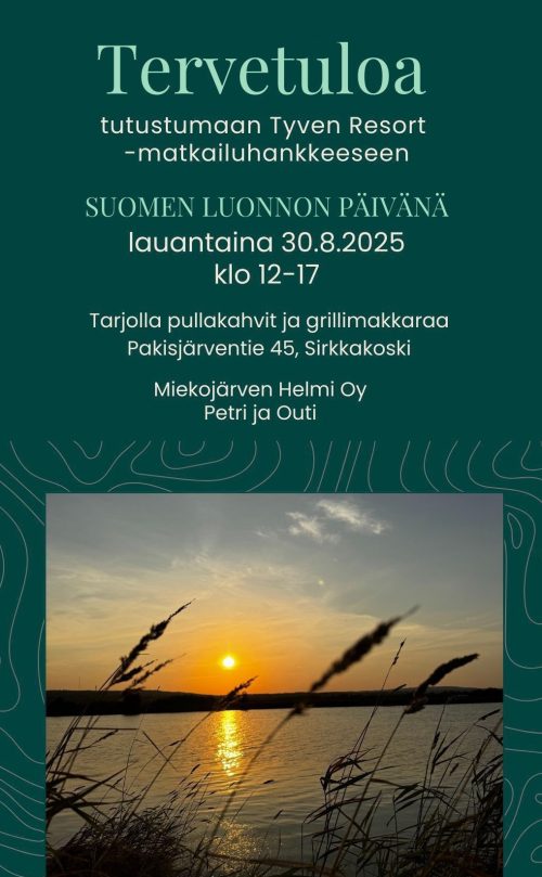 Tyven Resort on uusi, luonnon läheinen kohde Länsi-Lapin Pellossa, kauniin Miekojärven rannalla. Kohdetta rakennetaan parhaillaan, ja Resortin ensimmäiset loma-asunnot valmistuvat joulukaudeksi 2025. Työmaahan pääsee tutustumaan avoimien ovien päivän puitteissa la 30.8. klo 12.00-17.00. Lisätietoa kohteesta: https://www.tyvenresort.com/